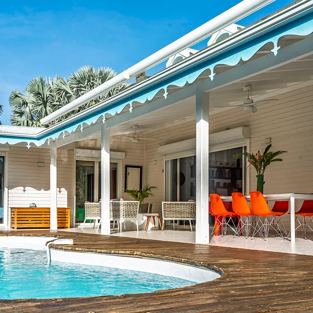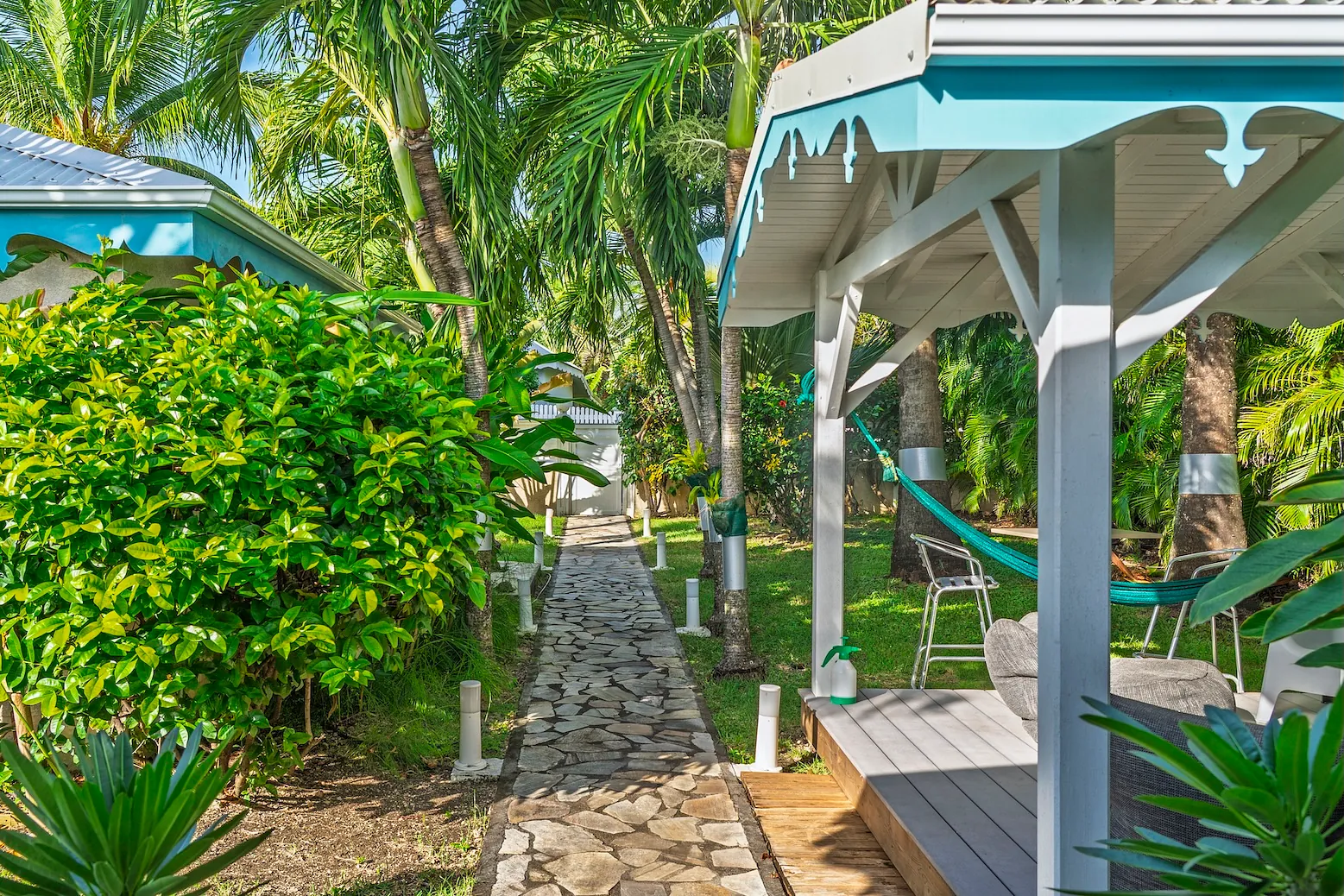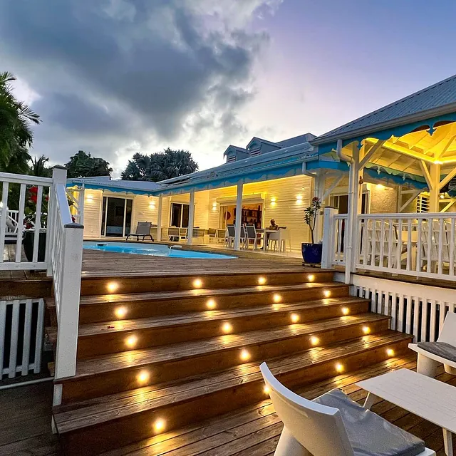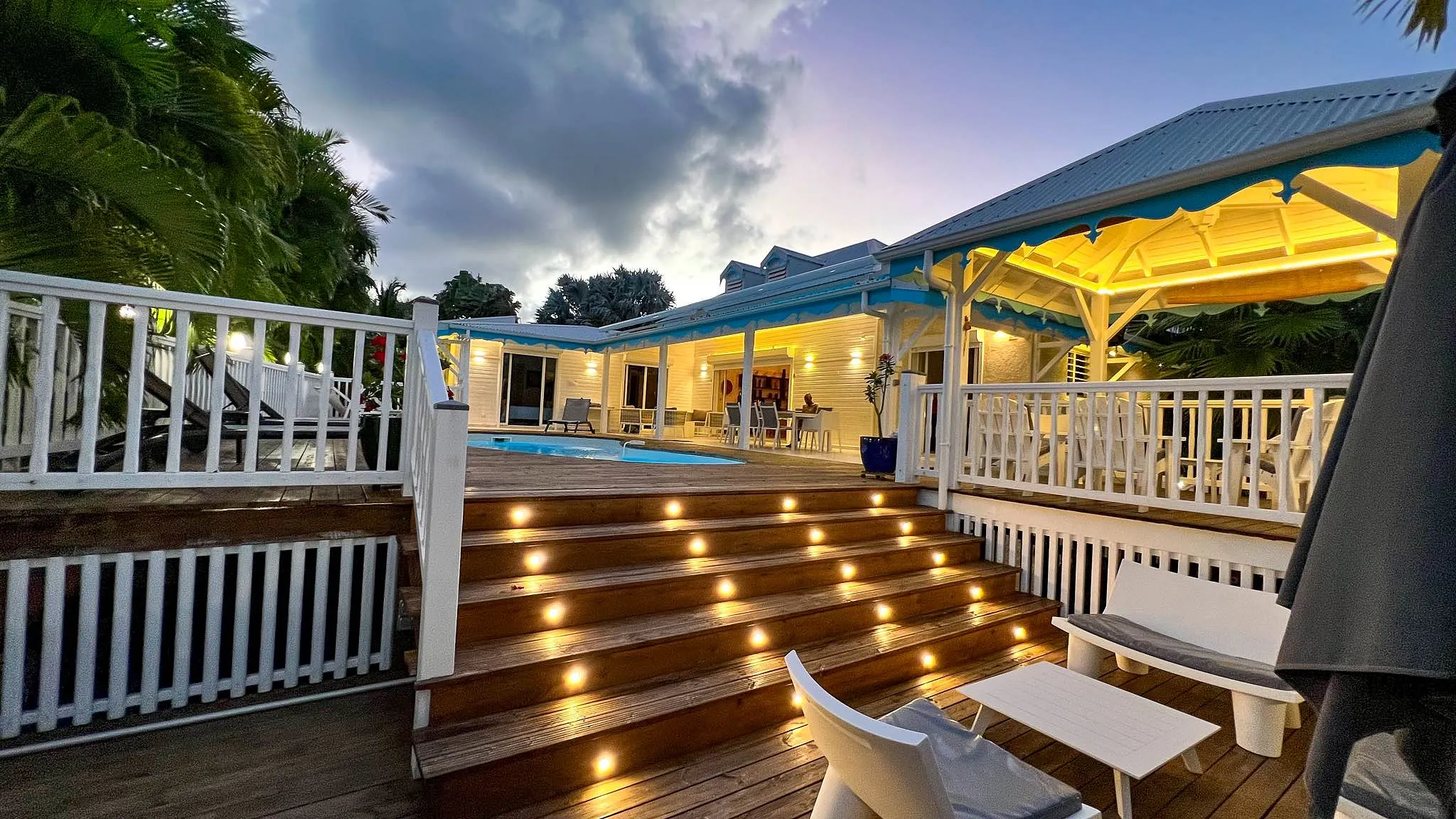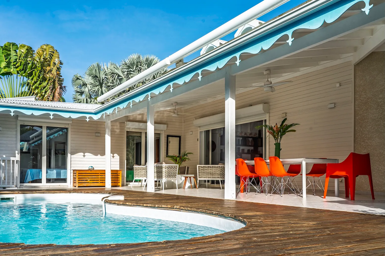La villa Les Arbres Voyageurs vous accueille à Saint-François dans un jardin tropical de 1000 mètres carrés avec pisicine privée, jacuzzi, et plusieurs carbets qui constituent plusieurs espaces de vie pour agrémenter votre séjour